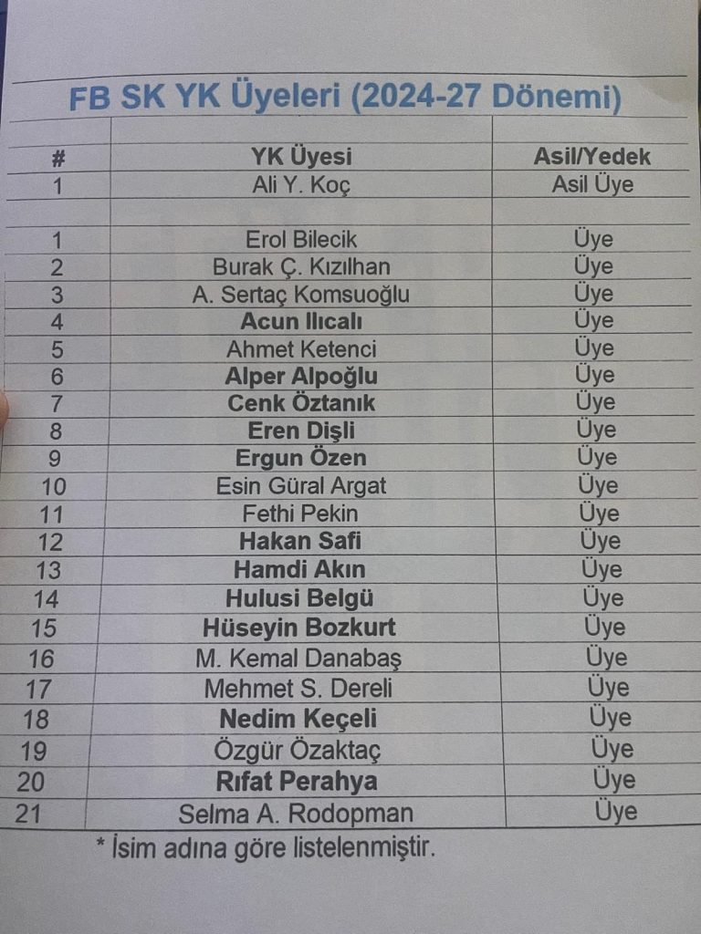 İşte Ali Koç’un Yönetim Kurulu Listesi: