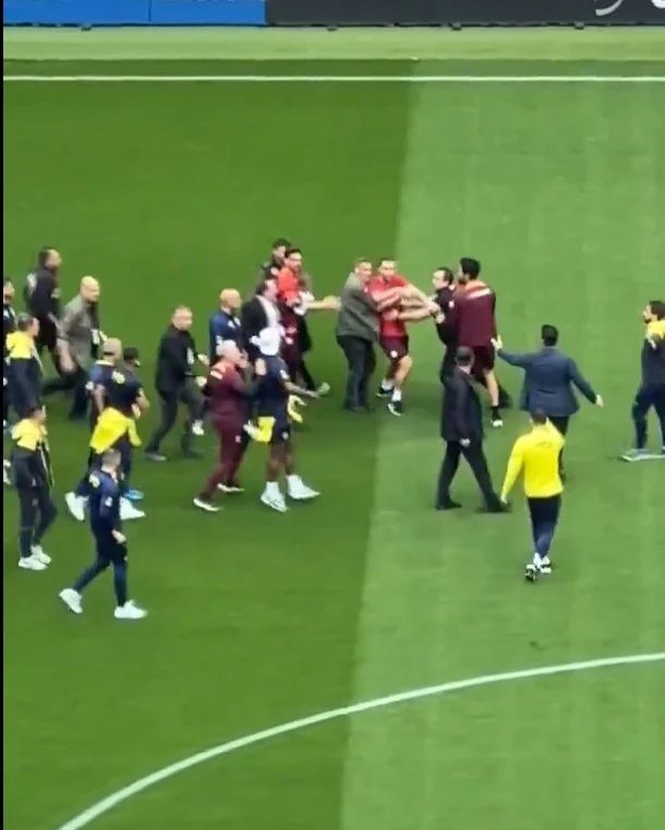 Maç öncesi sahaya çıkan Fenerbahçeli futbolculardan Mert Hakan Yandaş, taraftarlara doğru arma gösterdi. Bunun üzerine Abdülkerim Bardakcı, Kaan Ayhan ve Kerem Aktürkoğlu, Mert Hakan Yandaş’ın üzerine yürüdü. Çıkan tartışma bir anda büyüdü ve güvenlik güçleri sahaya girdi.